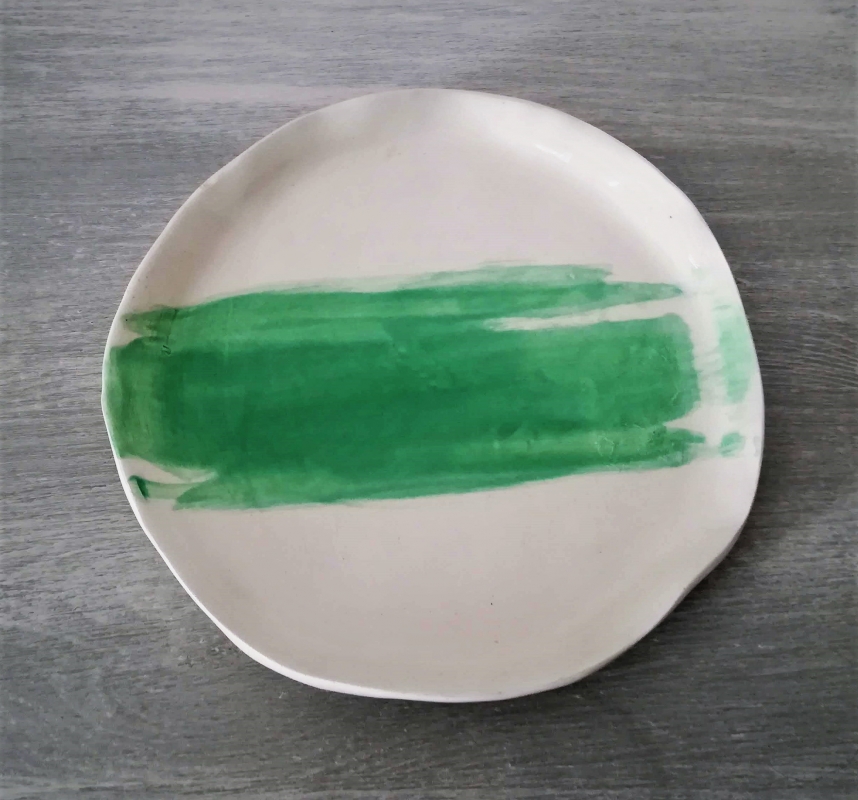 stj Sous tasse en céramique, terre blanche, moulée, façonnée et peinte à la main, chaque pièce est donc unique.