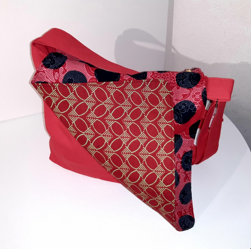 Sac/rouge Sac à main rouge rabat double face. Changez de face selon votre envie (boutonnage). Grande poche centrale et 2 poches avec fermeture éclair, 1 au dos et une à l'intérieur. Voir image sac même gamme en bleu.