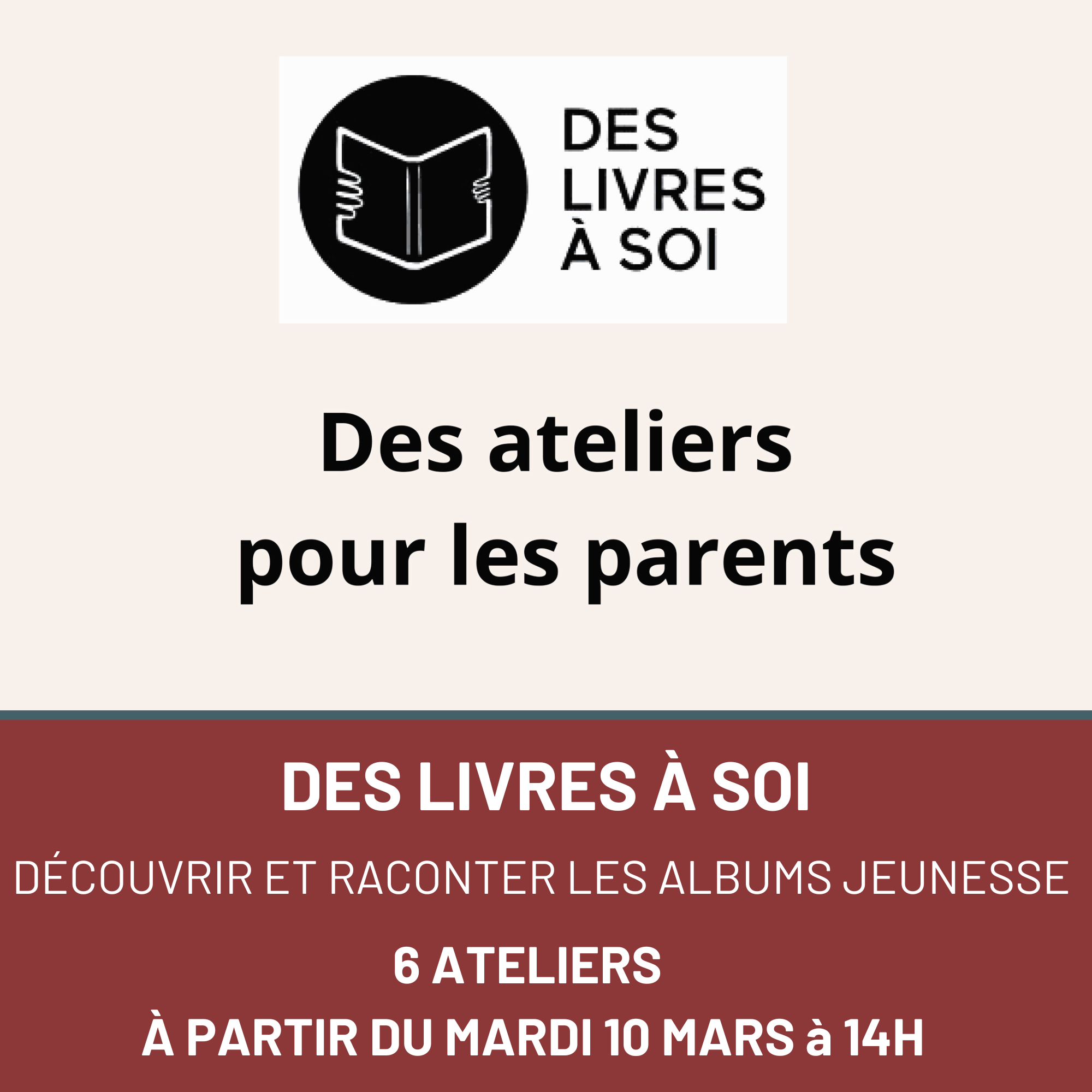 Date des ateliers : le 1er est le 10 mars à 14h (date à venir pour les 5 prochains)