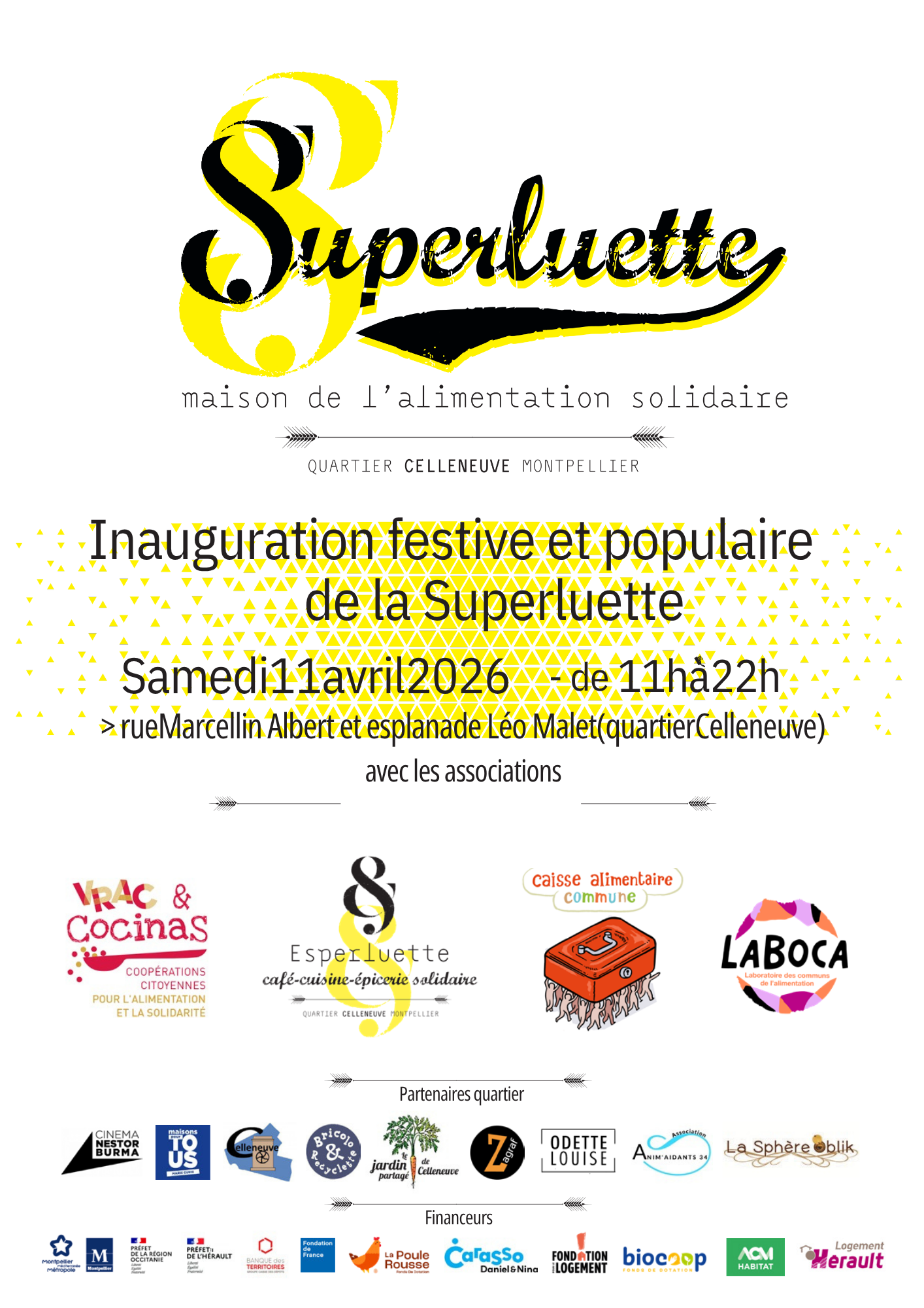 Lieu : Esplanade Léo Malet et dans la Superluette (Place du marché) // Tram : ligne 3 - arrêt Celleneuve
