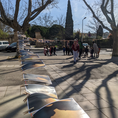 Installation artistique éphémère faite par tou·te·s autour de la Terre sur le thème : OMBRES PORTÉES