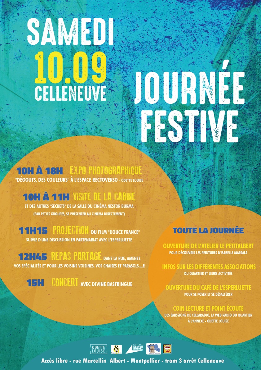 Toute la journée : ouverture de l’atelier LePetitAlbert pour découvrir les peintures d'Isabelle Marsala, des infos sur les différentes associations du quartier et leurs activités, ouverture du café de l'Esperluette pour se poser et se désaltérer, un coin lecture et un point écoute des émissions de la web radio du quartier Cellaradio à l'Annexe
