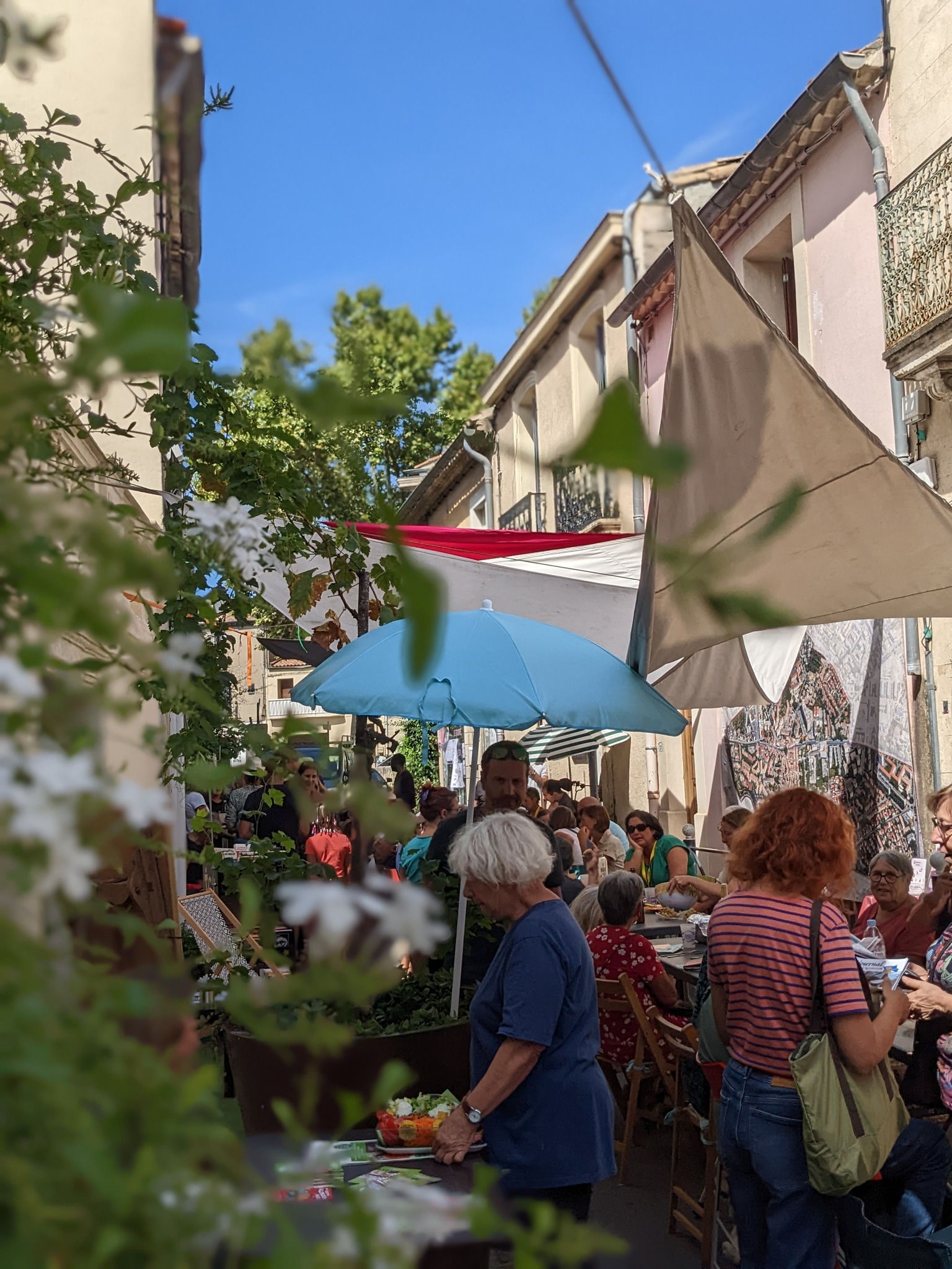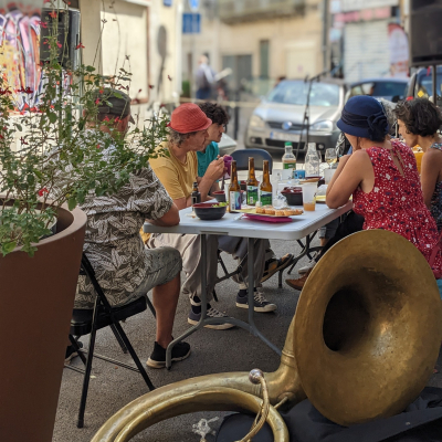12h45 : Repas partagé dans la rue, amenez vos spécialités et pour les voisins voisines, vos chaises et parasols....!!