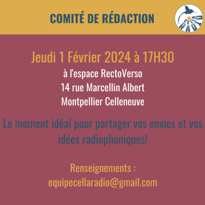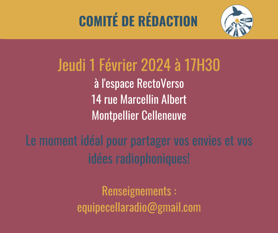 Gratuit et sur inscription : equipecellaradio@gmail.com