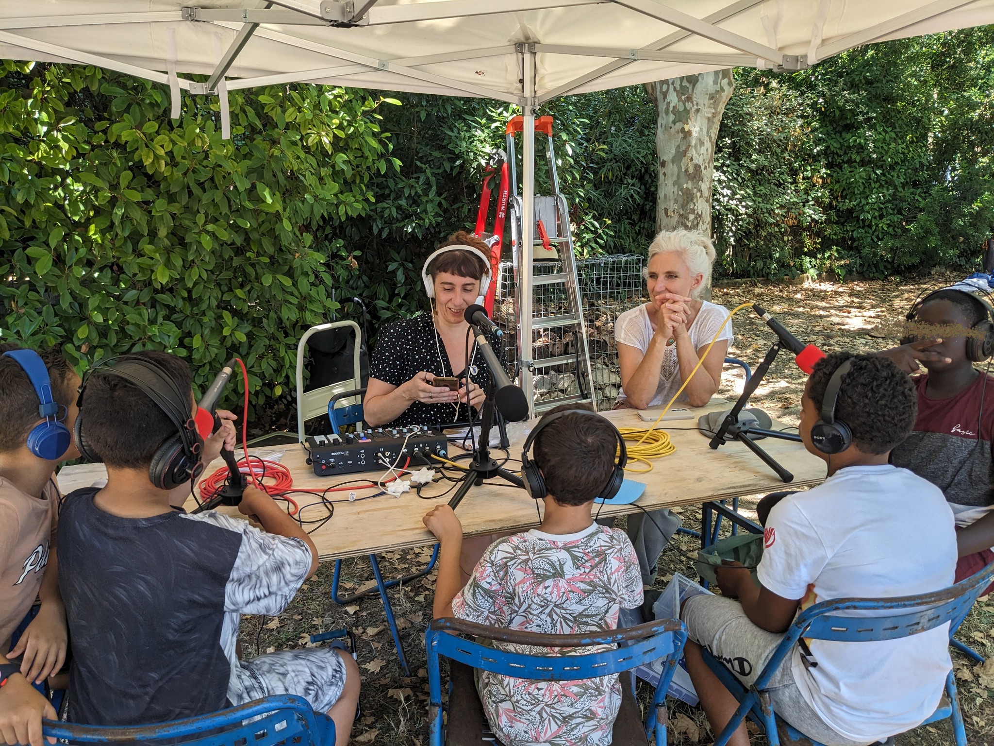 De 14h à 16h : Impromptu radiophonique avec l'équipe Cellaradio, la plateforme de podcasts créée par et pour les habitant.e.s de Celleneuve. Par l'Association Odette Louise