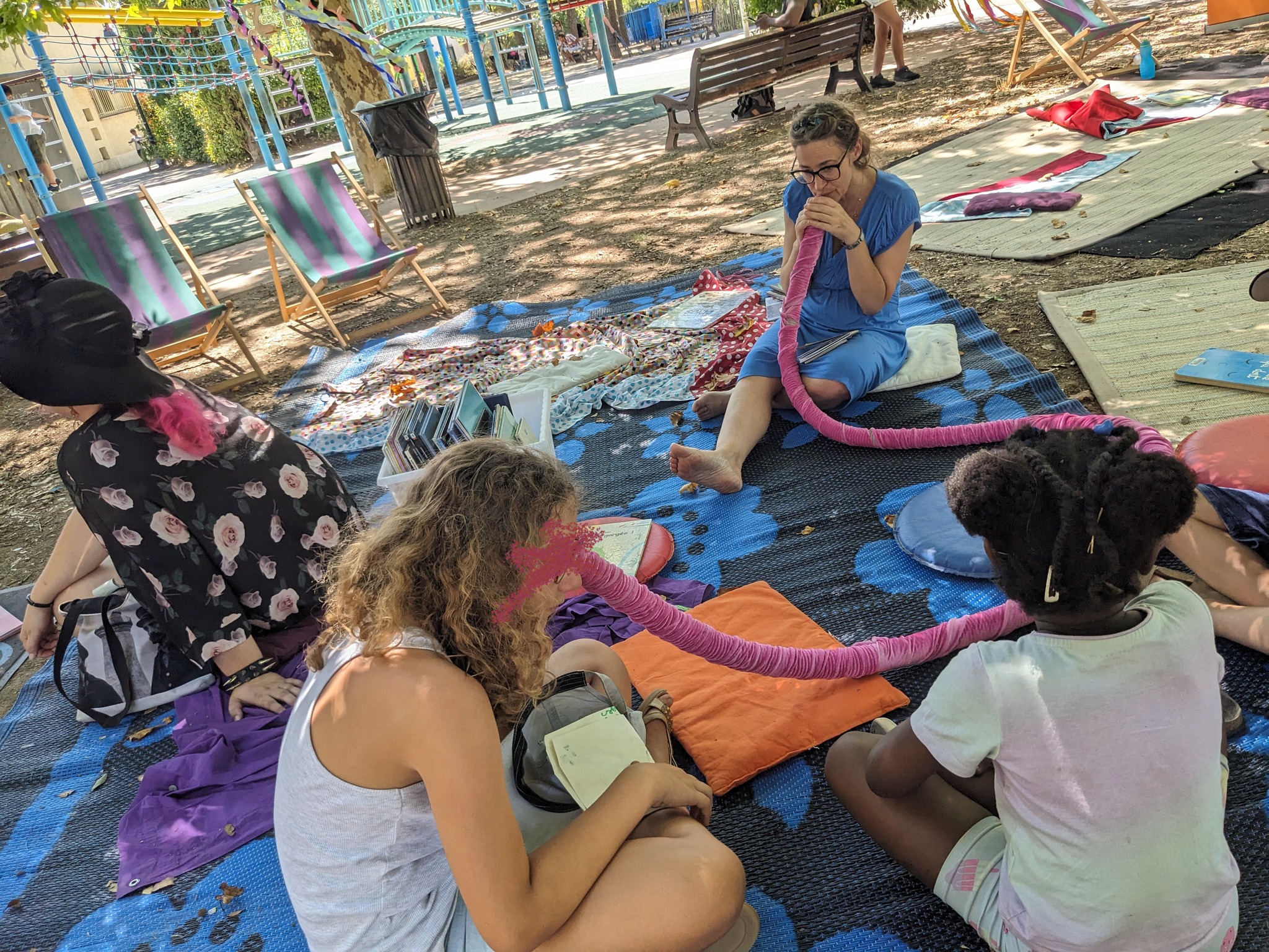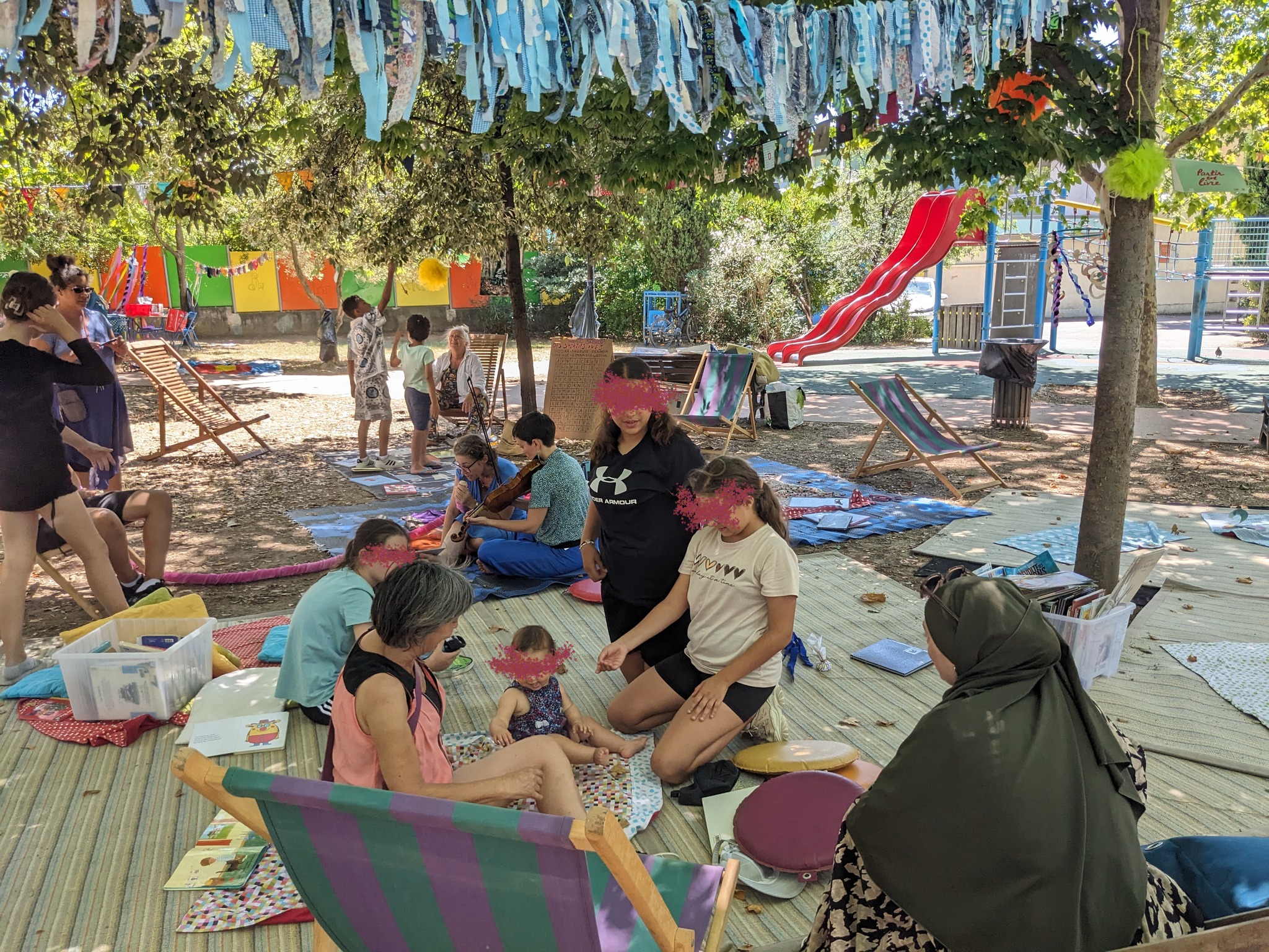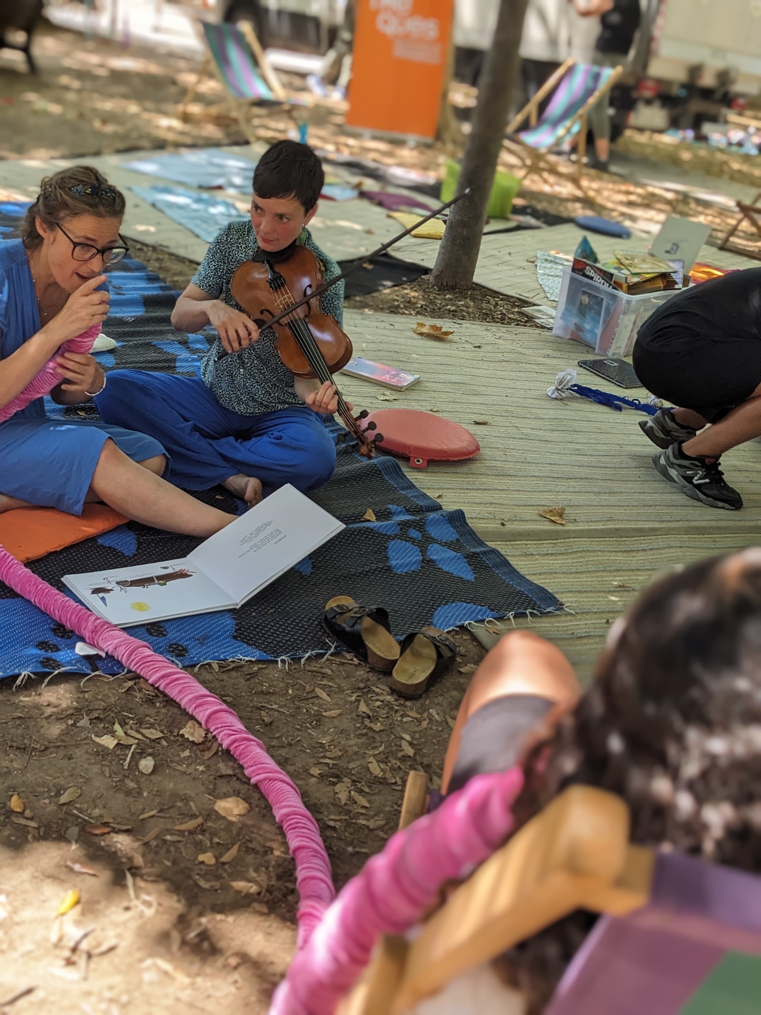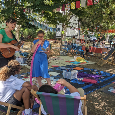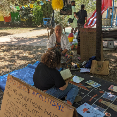 Mais aussi tout au long de la journée un espace de lecture, des grands jeux en bois, des jeux de société, un jeu de piste, la présence de Cellaradio avec les interviews des deux autrices en résidence Roxanne Bee et Louise de Contes