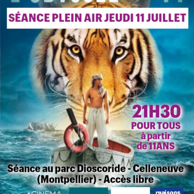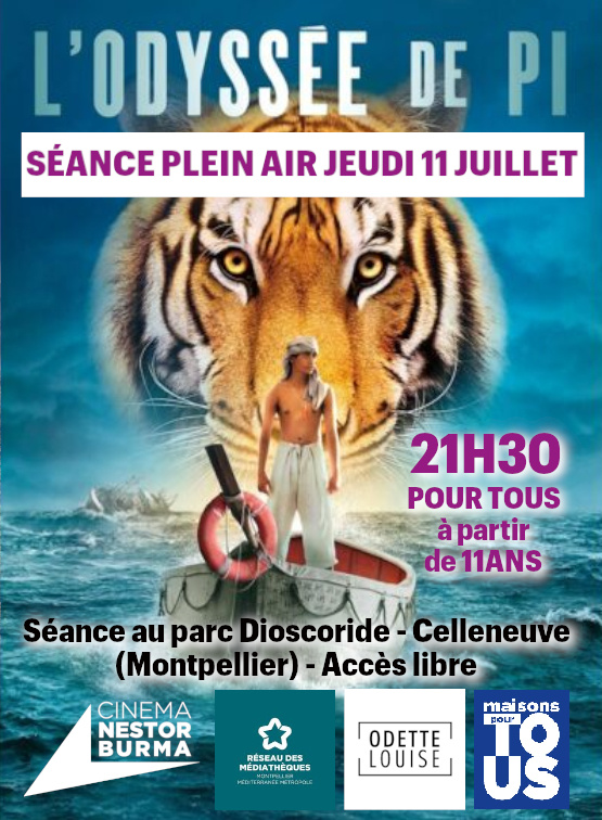 À 21h30 : Séance cinéma en plein air. Par le cinéma Nestor Burma - L’Odyssée de Pi de Ang Lee - États-Unis 2012 - 2h05 - VF