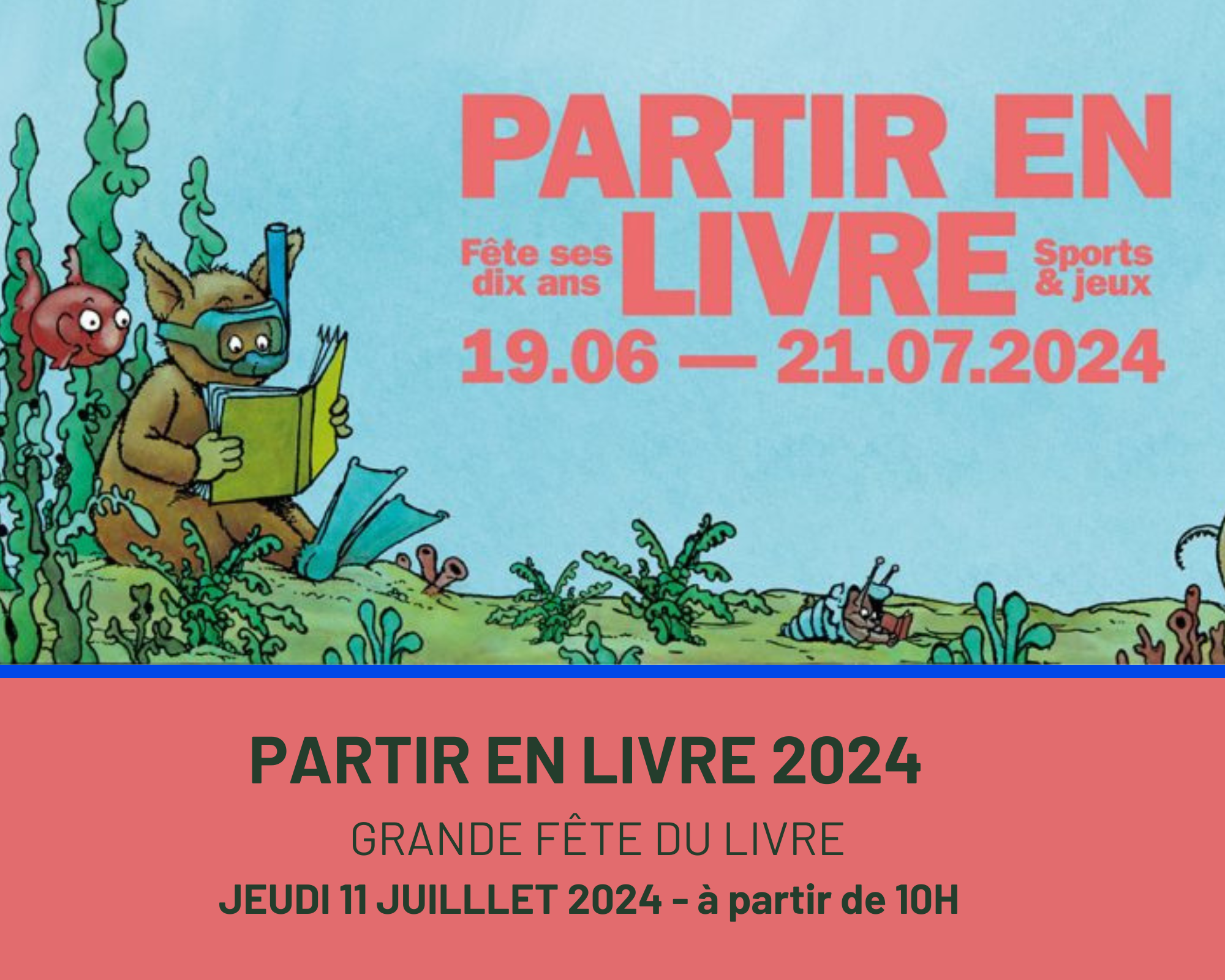 De 16h30 à 17h : Boîte à lire musicale. Rejoignez-nous pour danser avec les artistes de la Boîte à lire ! Une fin de journée festive pour célébrer en beauté les 10 ans de Partir en Livre. Avec Anna Milani, Johanna Dupuy, Lucile Marsac et Marion Sila de l’association Odette Louise.