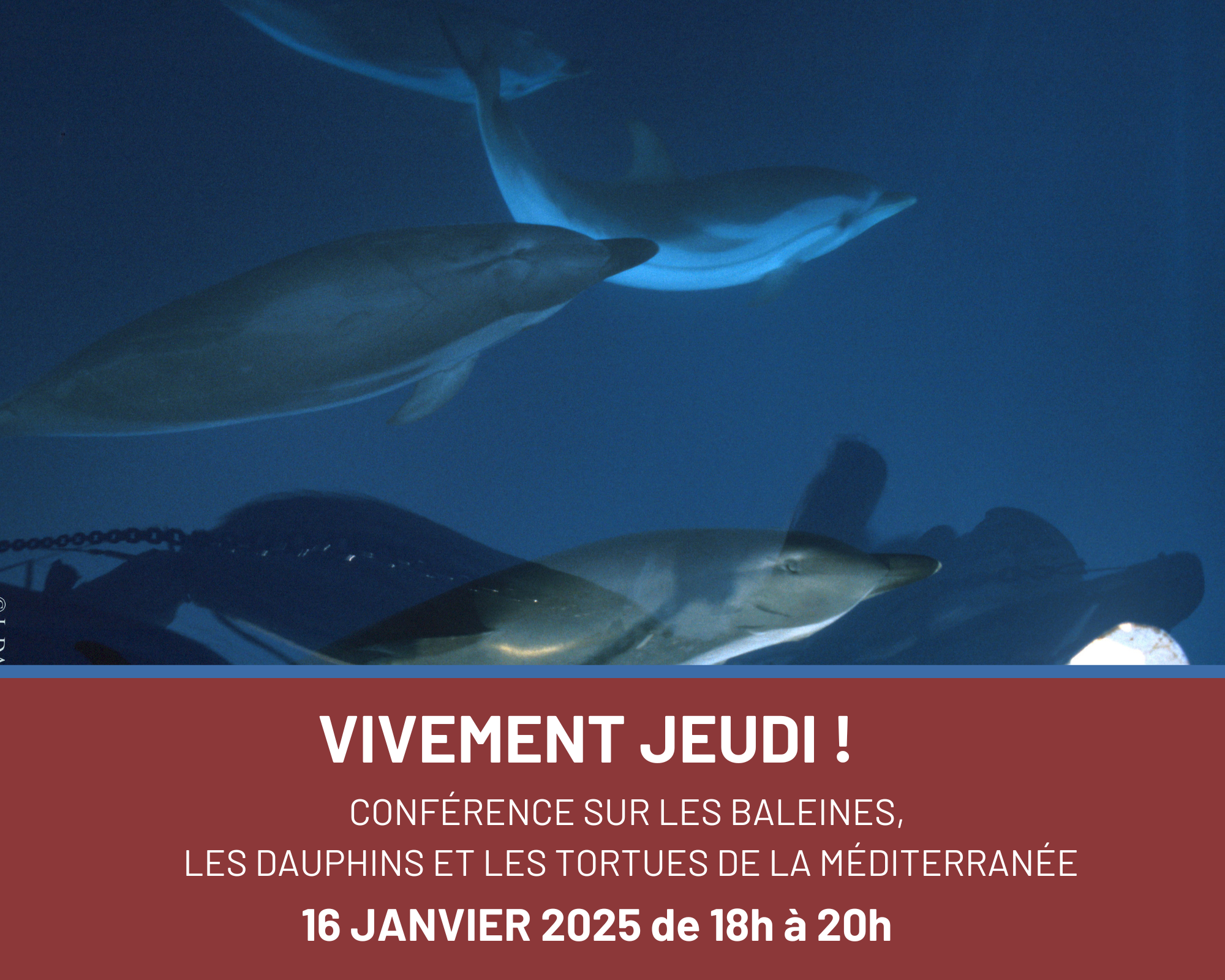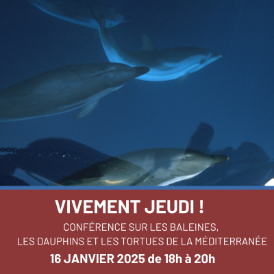 Cette semaine, nous vous proposons une conférence sur les baleines, dauphins et tortues de la Méditerranée, animée par Léa David, chercheuse en biologie marine à l'EcoOcéan Institut.