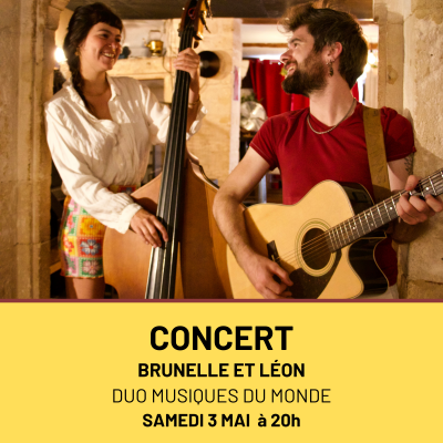 “Brunelle et Léon” est un duo de musiques du monde. Deux voix, une guitare et une contrebasse, des adaptations de musiques de partout et dans de nombreux styles (cumbia, musiques andines, folk, rock, pizzica, chanson française, musiques de l'est….). L'idée est de faire un petit tour du monde en une ou deux heures à écouter et/ou à danser sur des airs et des thèmes connus internationalement comme sur des musiques traditionnelles très peu reprises. En tout, plus de 15 langues dans le spectacle !